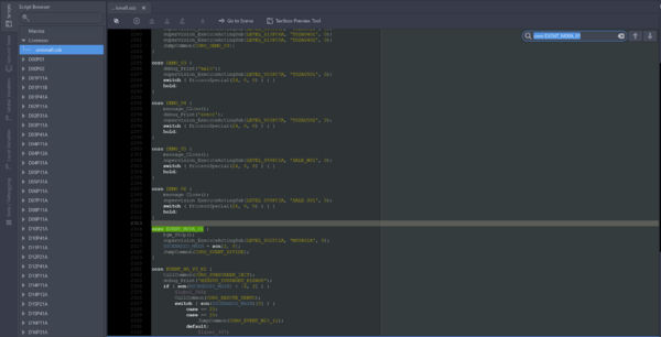 Be sure you search for EXACTLY "coro EVENT_M00A_01". This should be the only match!