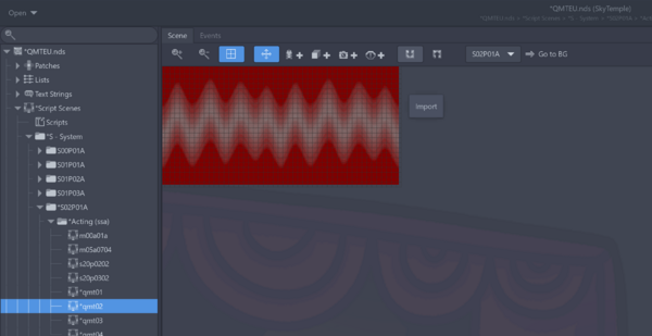 Repeat the process of pasting in the remaining scripts. Finally, the script that contains the aura bow segment of the quiz (script #2 or the megascript) needs additional work done to the .ssa file. Navigate to S02P01A->M00A01A, and click the Export Button (square with an up arrow in it).